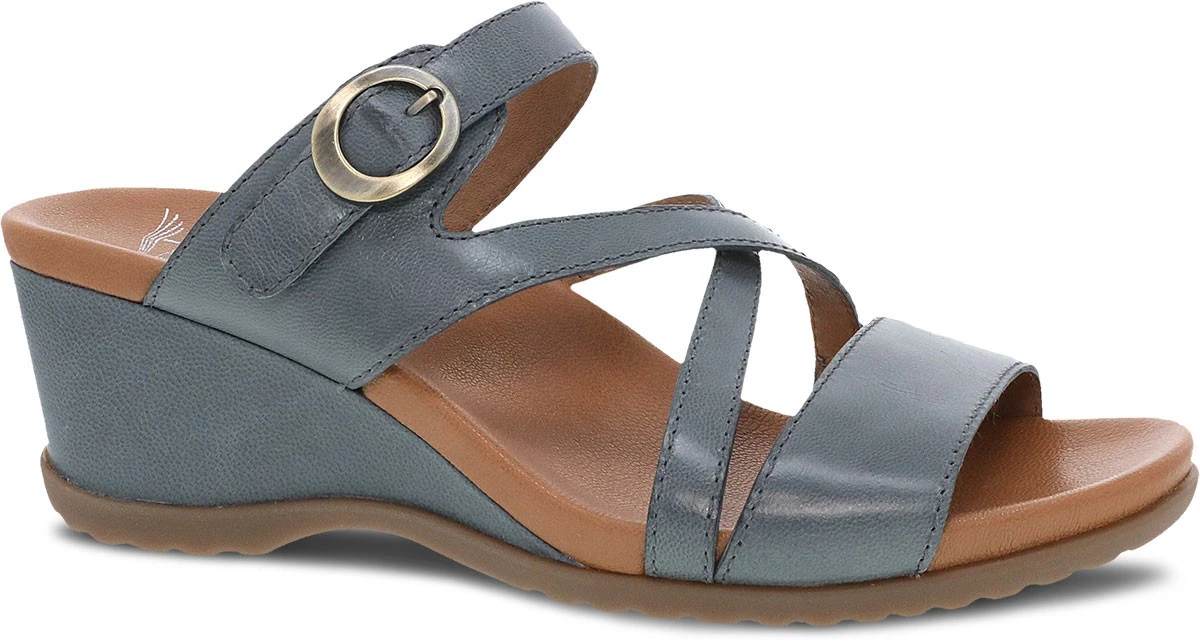Englin’s Fine Footwear presents the women’s ‘Ana’ from Dansko. Ana is a stylish open back wedge sandal with asymmetrical detailing on the upper, and an adjustable buckle for an ideal fit. Perfect for every day wear, Ana features leather uppers, chrome-free leather linings, and a leather wrapped contoured EVA footbed for added comfort.