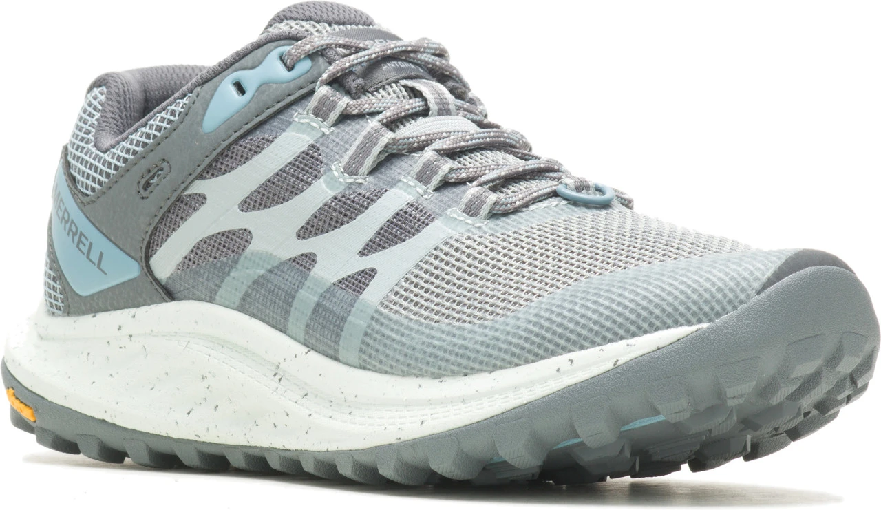 Englin’s Fine Footwear presents the women’s ‘Antora 3’ from Merrell. Merrell’s best-selling women’s trail running shoe just got better in the Antora 3. Key updates include a more durable upper for over foot protection, a softer and more responsive midsole with FloatPro Foam™ pods strategically placed under the heel and forefoot where you need extra cushion the most, and a new grip-enhancing design to the outsole made by Merrell’s partners at Vibram®. The Antora 3 updates will ensure you’re comfortable and capable when you make your miles wild on trail.