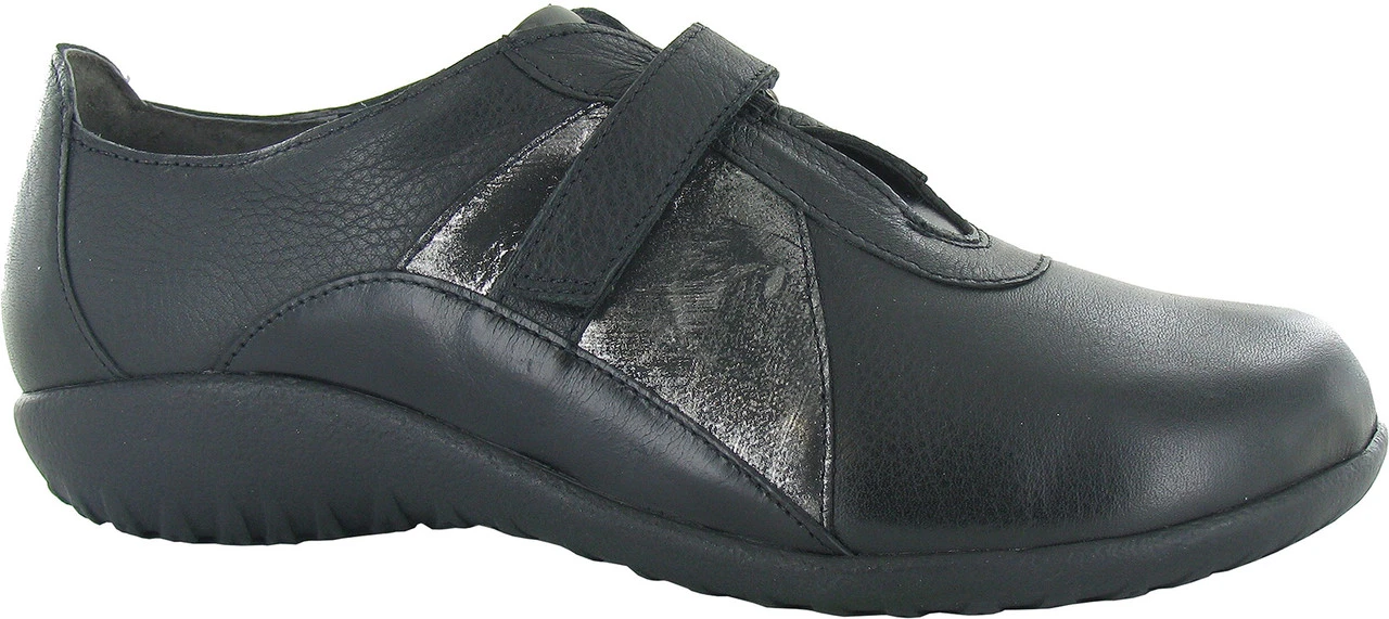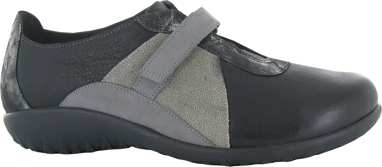 Englin’s Fine Footwear presents the women’s ‘Amiria’ from Naot. The Amiria is designed with a hook and loop strap for and easy on/off and all day comfort. Naot’s anatomic cork & latex footbed is wrapped in a pampering suede and molds to the shape of the foot with wear. This collection uses a hand-sewn Strobel construction making it strong and extremely flexible.
