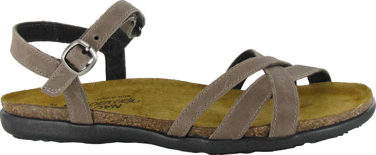 Englin’s Fine Footwear presents the women’s ‘Patricia’ from Naot. Feminine and versatile, the Patricia is a must have summer sandal. It features a hook & loop ankle strap for adjustability & easy wear. Naot’s anatomic cork & latex footbed is wrapped in a pampering suede and molds to the shape of the foot with wear. The Flat Elegant Collection features a .75″ TPR sole.